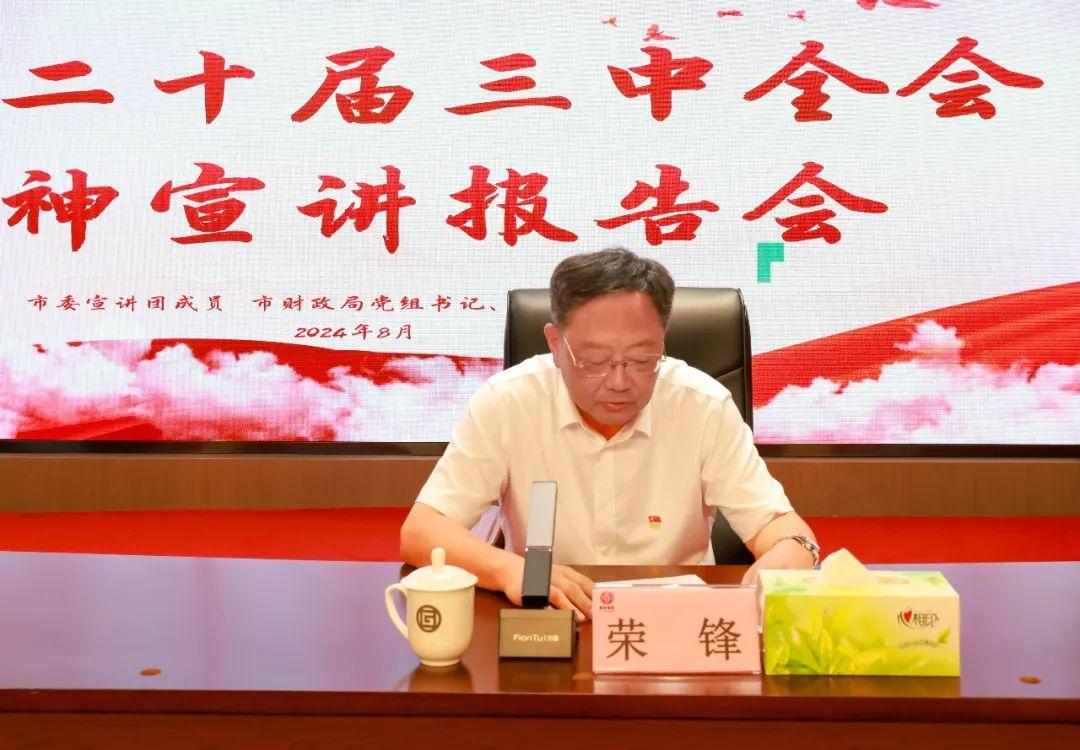 8月15日上午,学习贯彻党的二十届三中全会精神市委宣讲团报告会在sm调教 举行。烟台市委宣讲团成员、市财政局党组书记、局长孙福勋作宣讲报告,sm调教 党委书记、董事长荣锋主持并讲话。